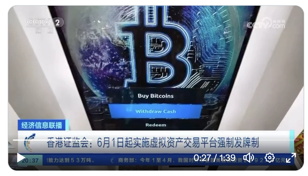 值得注意的是中国中央电视台播出了有关香港接受加密货币的报道,虽然不过短短 98 秒,但对于加密货币却没有任何负面评价,这与 2019 年中国大陆对加密货币的态度大相径庭。