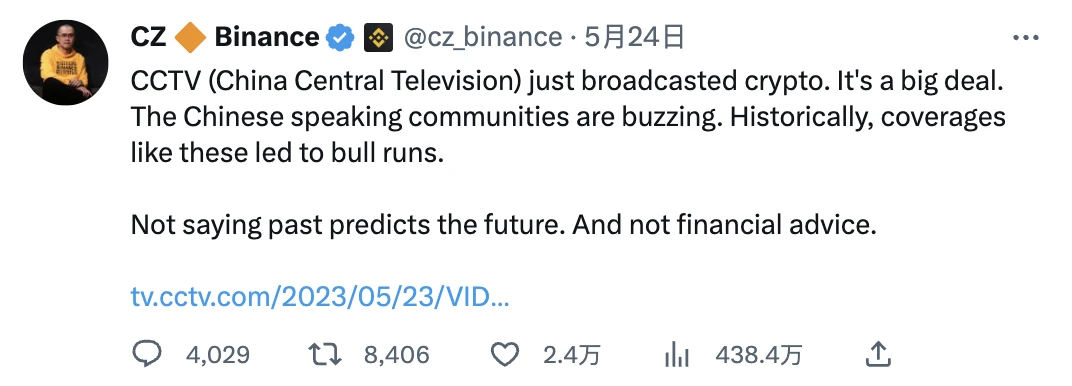 五月香港证监会正式发文宣布,从 6 月 1 日起实施虚拟资产监管规定,散户最快下半年可在发牌交易平台买卖虚拟资产。CZ 也在 Twitter 上分享 CCT V2 经济信息联播之香港加密资产监管规定落地,受此影响香港板块和中国板块的代币也迎来了一波非常猛烈的拉升。