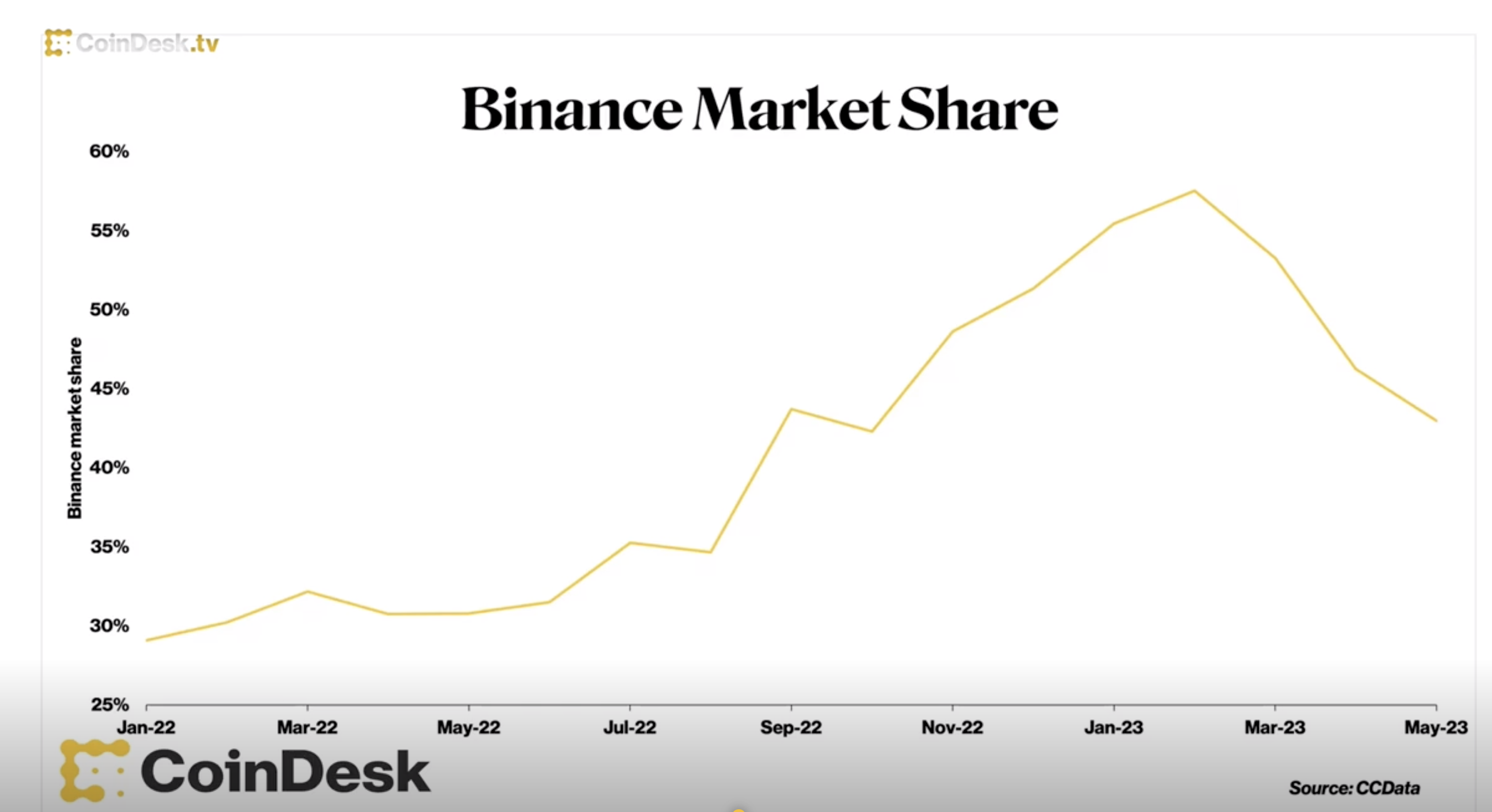 币安2023年5月市场份额下降至43%,创8个月以来的最低水平