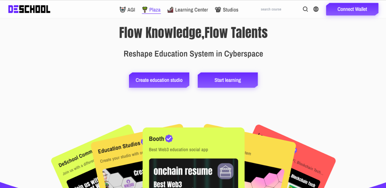DeSchool 是由 SeeDAO 战略孵化的 Web3 在线教育基础设施,其讲师可利用该工具给完成课程的学员发放 SBT 教育凭证,Web3 组织亦可用该工具简化社区教育流程。未来,DeSchool 计划推出链上教育简历功能和链上教育认证计划,目的是成为 Web3 时代的 Coursera+LinkedIn。