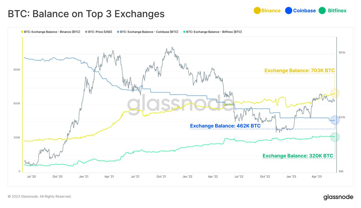 博链财经BroadChain获悉,6月5日,Glassnode称,在评估过去三年前3大交易所持有的