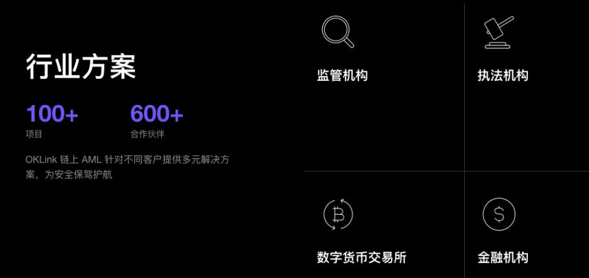 对于服务商来说, OKLink 链上 AML 解决方案可以为服务机构提供更完善的合规方案,有效应对非法洗钱等挑战, 可以协助交易所应对监管政策和合规挑战, 提高数字资产安全透明度。