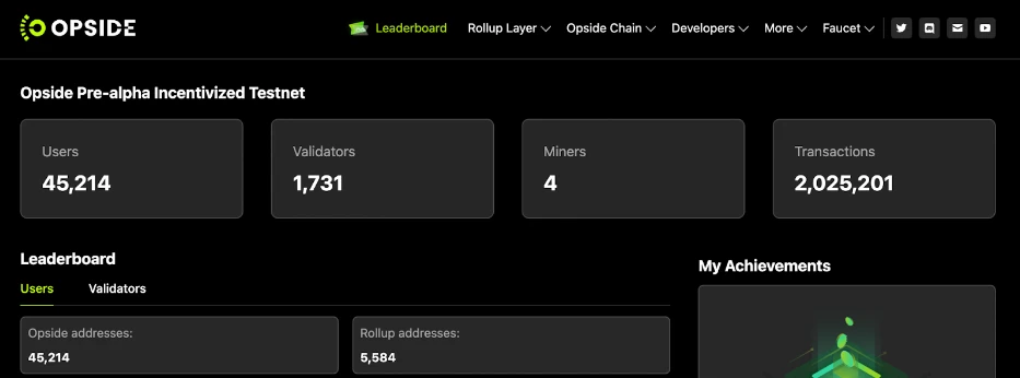 自 2023 年 5 月 24 日 Pre-alpah 测试网上线以来,Opside 运行平稳。截至发稿,Pre-alpha 测试网总交易量达 2, 025, 201 笔, 45, 214 名独立用户参与。目前, 1, 731 个节点稳定运行中,共同维护 Opside 网络的稳定性和安全性。
