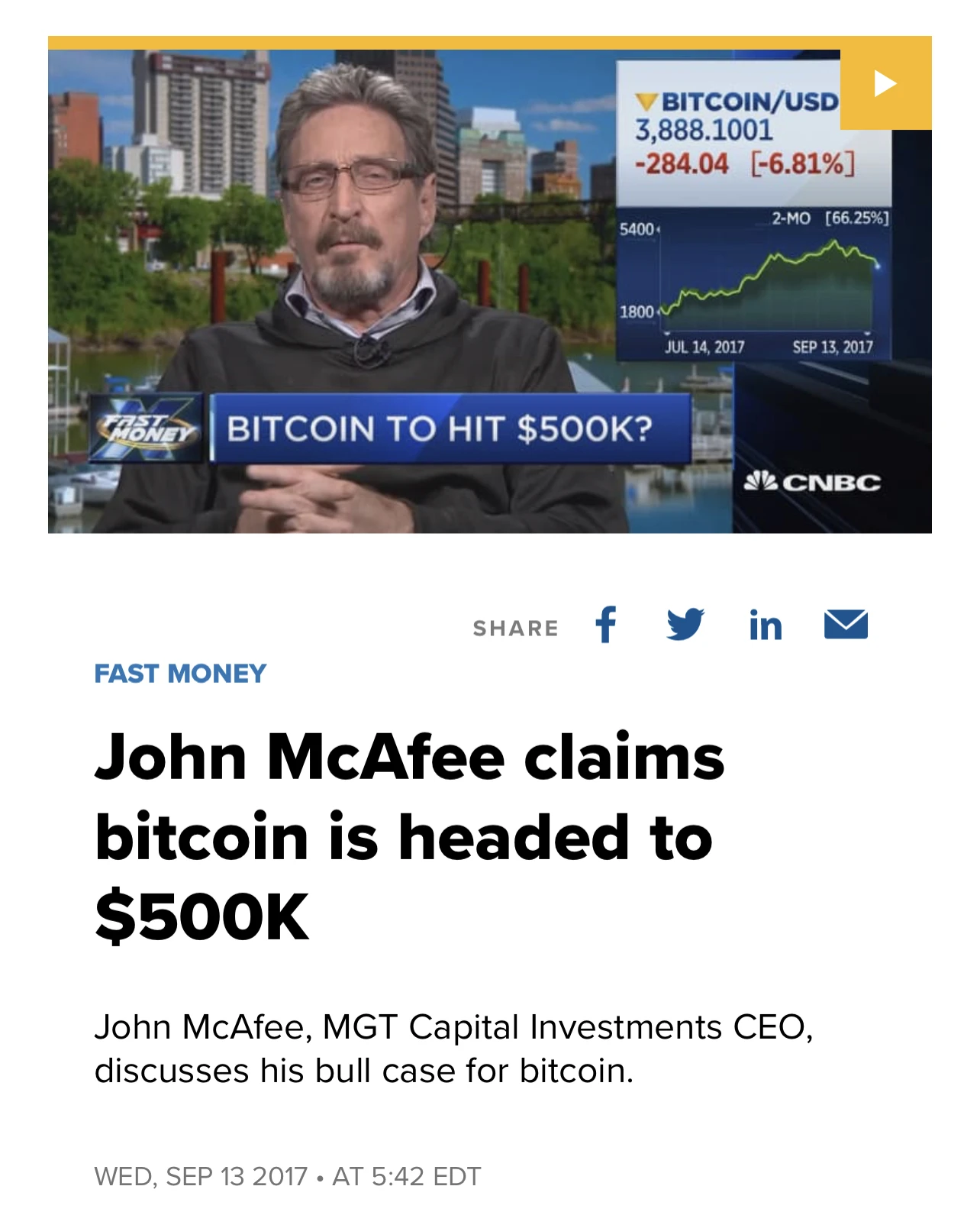 在 2017 年牛市中,约翰·麦卡菲发表了两个声明: