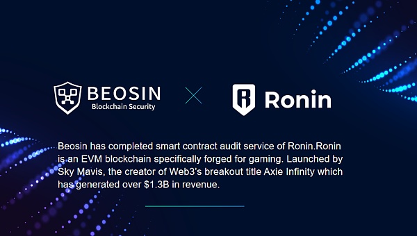 Beosin正式完成对Ronin的安全审计 确保Ronin生态的安全性和稳定性