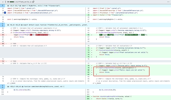 Circom 项目已经针对该通用漏洞进行了修复,涉及到其实现的共计3个算法: