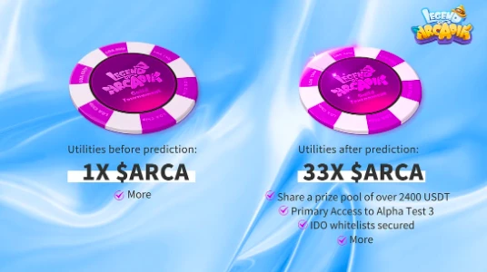 此外 LOA 还创新性地在 Chip NFT 中加入可提取的同质化代币,可以通过设置不同的触发条件来控制用户在提取时的数量。比如在本次活动中,用户如果使用 Chip NFT 进行过竞猜活动,那么这枚 NFT 就能够领取到 33 个 ARCA 代币,如果没有使用过,则只能够领取到 1 个 ARCA 代币。