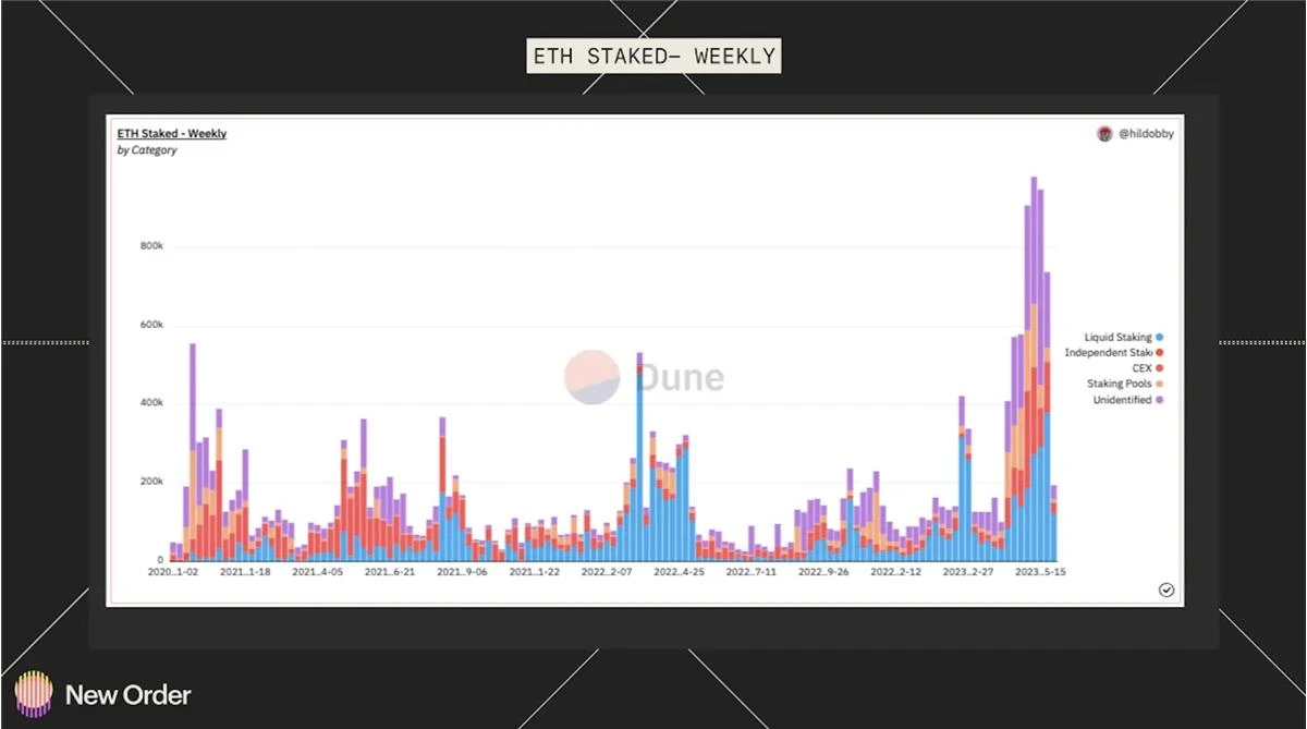 最后,如前所述,Shapella 升级代表了吸引机构投资者的重大进步,但这并不是旅程的终点。目前的抑制因素主要表现为监管不确定性,特别是妨碍西方机构投资者(养老基金和保险公司)在以太坊生态系统中进行大规模投资。然而,Shapella 升级可能会刺激整个行业的监管讨论产生有利的结果,特别是随着与安全相关的辩论的出现。6 月 1 日,在香港发放加密货币交易所许可证进一步增强了这种潜力。这些因素的收敛——来自东方世界的预期资本流入和 Shapella 升级——为行业未来更透明、更有监管带来了乐观情绪。
