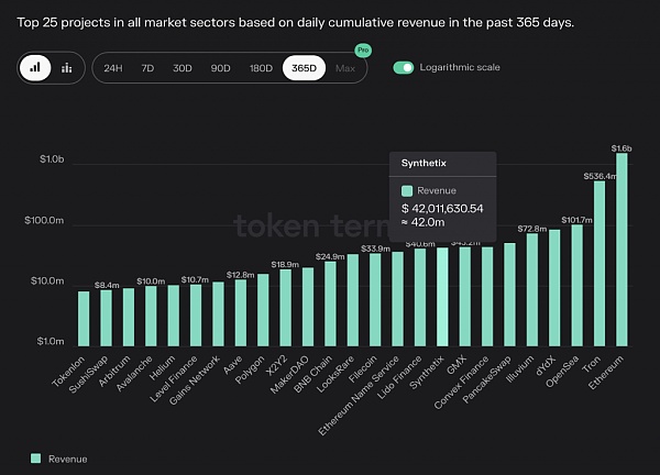Synthetix 收入主要来自 Synths 现货交易和永续合约交易,一开始完全以合成资产平台的定位在市场中推出,且还特别设置了一个及其特殊的「债务池」运作机制:用户通过质押 SNX 来借出 sUSD,这与 MakerDAO 抵押资产铸造 DAI 不同,虽然 Synthetix 也会在 SNX 抵押率不足(目前清算线为 160% 的抵押率)时进行清算,但本质上的逻辑却完全不同。