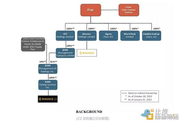 从具体操作看,CZ通过一系列离岸公司,创建受其控制的 BAM Management 和 BAM Trading,并通过Binance 与 BAM Trading 合作开设美国实体Binance US。 就具体关系来讲,BAM Trading 是 Binance.US在美运营公司,拥有 43 个美国司法管辖区(包括本区)的货币转移许可证;BAM Management 是 BAM Trading 的母公司,BAM Management 则由开曼群岛的 BAM Management Company Limited 全资拥有,BAM Management Company Limited 又由英属维尔京群岛的 CPZ Holdings Limited 全资拥有,而 CZ 拥有 CPZ 81% 的股份。