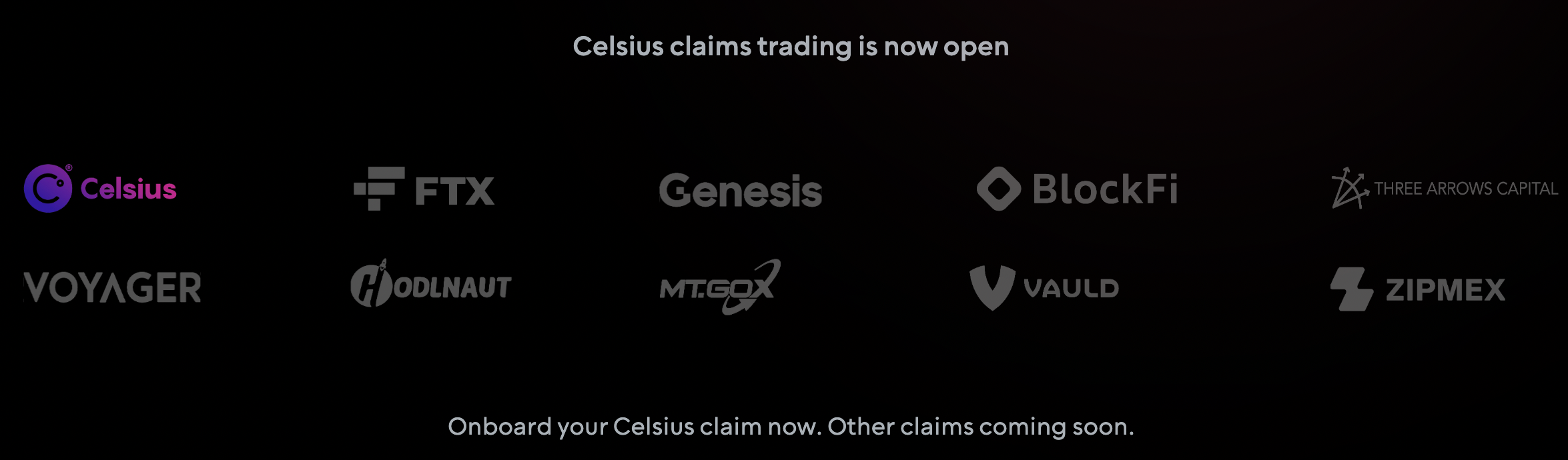 作为一个以债权交易为特色的平台,OPNX 计划支持多个已破产公司的索赔交易,包括 Celsius、FTX、Genesis、BlockFi 等。