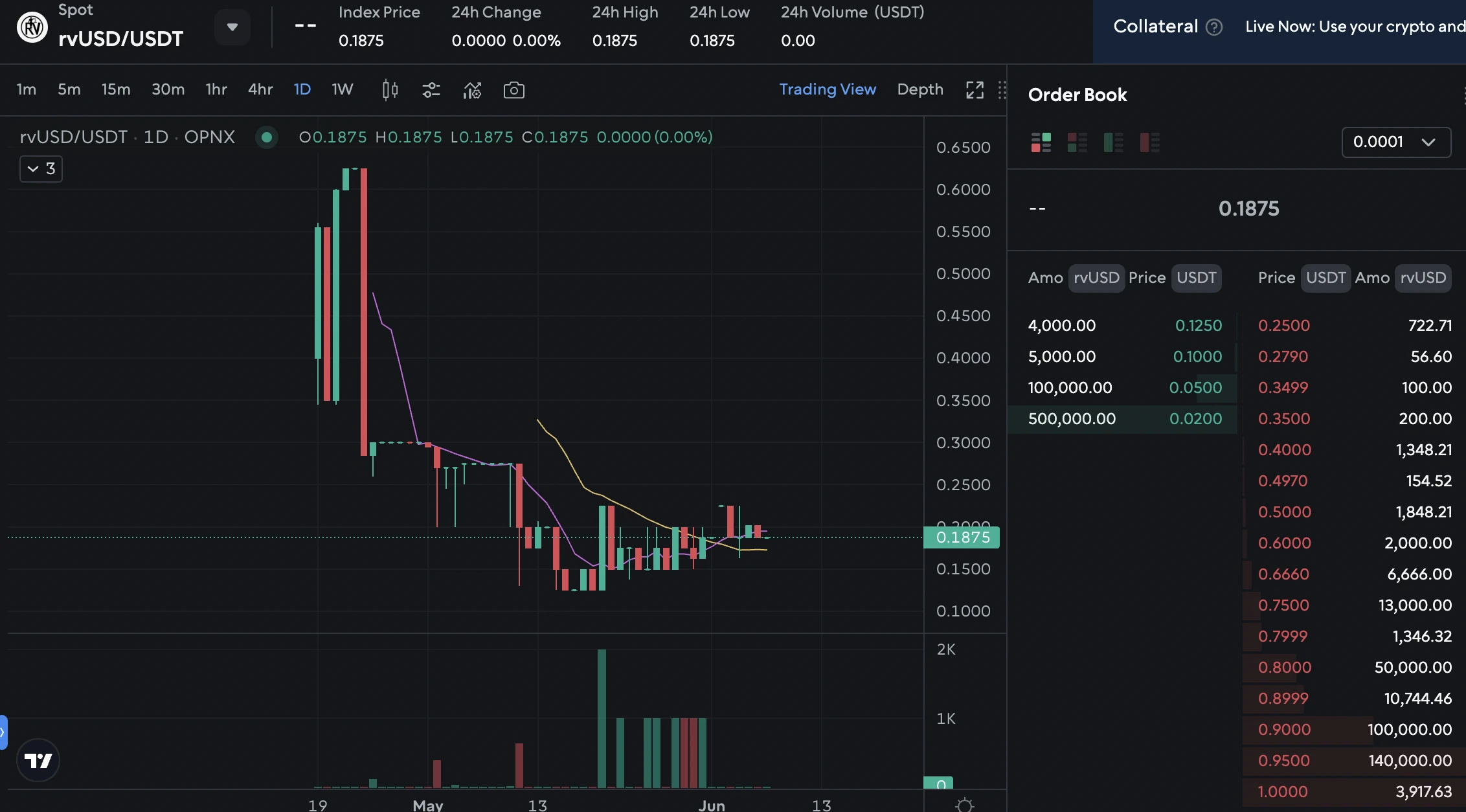 从 4 月份上线以来,rvUSD 的价格已从高点的超过 0.6 美元跌至目前的 0.1875 美元,截至 6 月 7 日,最近几天的交易量为零,且在市场价格附近的流动性较少。