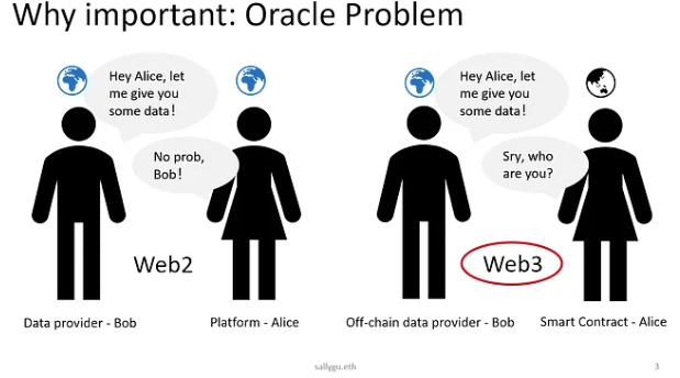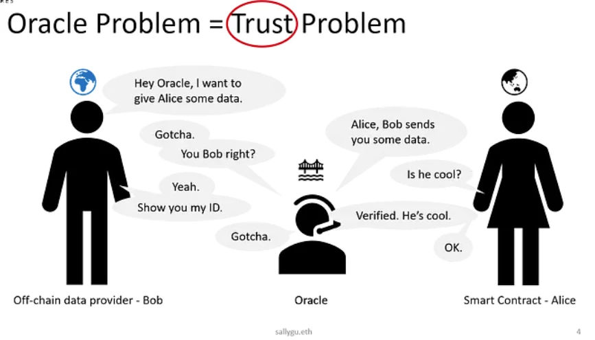 区块链是一个无法直接联网的封闭系统,智能合约无法直接调取互联网和现实世界的确定性信息,包括股票价格、汇率、总统大选的最终结果等,并且其由于共识机制也需要可信的第三方对数据进行验证。所以预言机扮演的更像是一个撮合链上链下信任的 broker 角色。