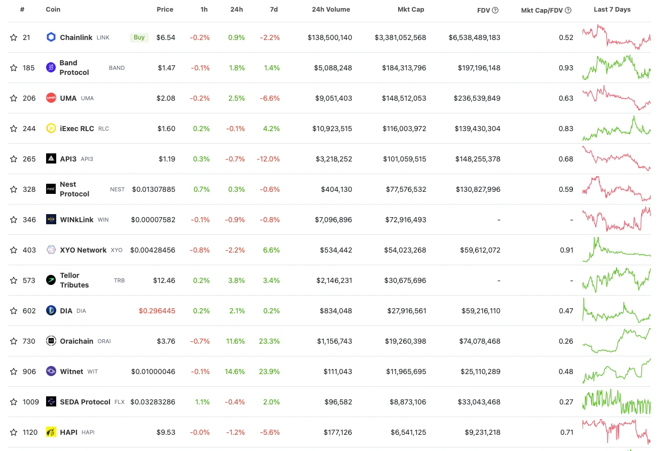 • 但值得注意的是,参考赛道后几名比如 Band、UMA 的币价,其在历史上也有不错的表现。