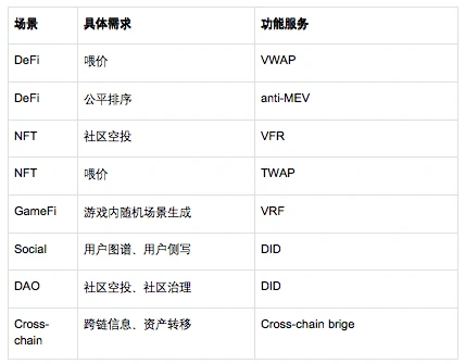 ○ 一个是在功能性价比上有大幅提升, 喂价或者随机数生成比 Chainlink 更加便宜 , 比如 Redstone,Ontropy 等声称其喂价可以相比 Chainlink 等传统方案便宜 80-100 倍的。因为一般而言只有在大幅降低调用成本的前提下,defi 或 gaming 项目方出于经济效益考虑才会可能为用其取代 chainlink 等原先的服务提供方。
