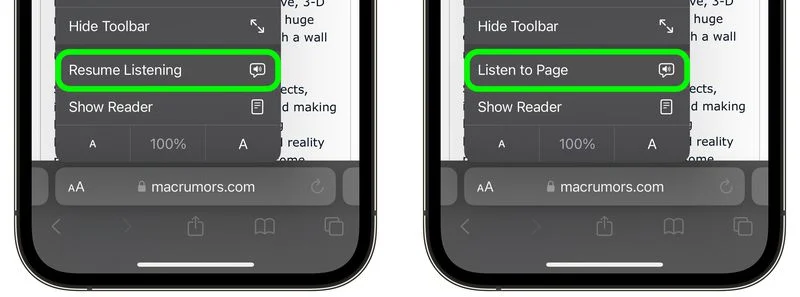 Safari获得了一个新的“收听页面”功能。在Safari的页面选项中添加了一个选项,可以让iPhone大声朗读正在浏览的网页,可以暂停和恢复该功能。