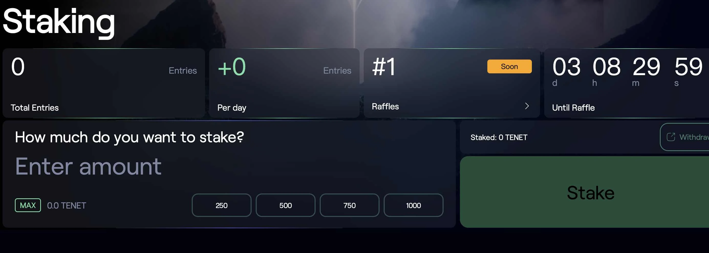 -输入金额点击 Stake 质押(目前正进行质押 token 抽奖获取 NFT raffles,未来可以将其存入 Eva 钱包获进行「Trade 2 Earn」)