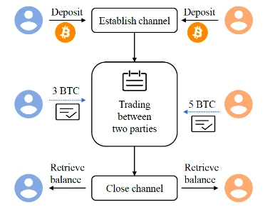 闪电网络最早于 2015 年由 Joseph Poon 和 Thaddeus Dryja 在其白皮书中率先提出。闪电网络使用微支付 (micro-payments) 通道技术,将大量交易放到比特币区块链之外进行,只把关键环节放到链上进行确认。其交易过程如下类比:需要交易的用户,开辟一个房间进行线下交易,进入房间时用户质押货币获得票据,使用新票据分配双方质押的货币,交易完成后,走出房间时,交易结算,用户凭借最新的票据赎回货币。