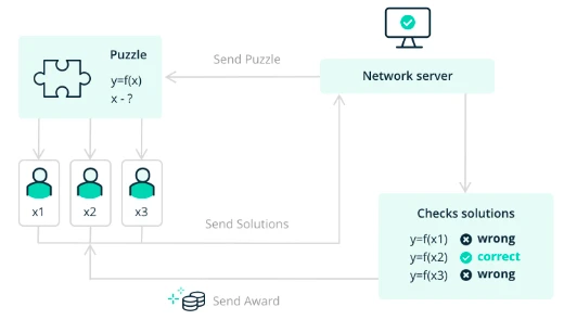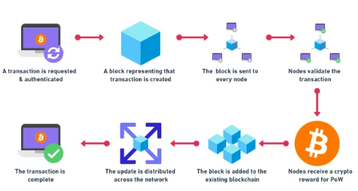 Proof Of Work 流程示例,图片来源: https://www.ledger.com/academy/blockchain/what-is-proof-of-work