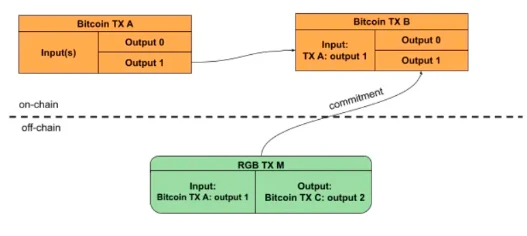 RGB 上的交易与 BTC 上交易的对比,图源: https://medium.com/@FedericoTenga/understanding-rgb-protocol-7dc7819d3059