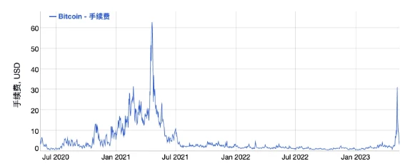 BTC 手续费,来源: https://bitinfocharts.com/zh/comparison/bitcoin-transactionfees.html#3 y