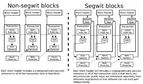 David A. Harding 贴出的新旧交易序列化示意图,数据来源: https://medium.com/@dexx/debunking-three-misconceptions-about-segregated-witness-3bbf55c6f4de