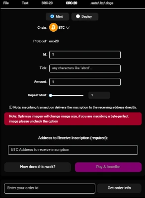 但有趣的是,Ordswap 提供了 inscribe orc-20 (一种兼容 BRC-20 的升级协议)的界面,这方便了用户进行相关操作。