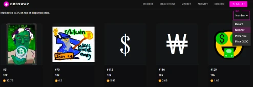 Ordswap 同样在做一个一站式工具,用户可以在 Ordswap 上面铸造、买卖 Ordinals 铭文。但 Ordswap 对 BRC-20 的铭文却不是特别友好,market 并没有专门针对 BRC-20 进行优化,market 中铭文排序仅支持四种方式(Recent、Number、Price ASC、Price DESC),显然,BRC-20 爱好者并不会把 Ordswap 当作首选的交易市场。