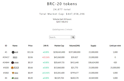 随着 Ordinal 理论的潜力被挖掘,BRC-20 来了,在我们写作时,最新的铭文都是 BRC-20 。