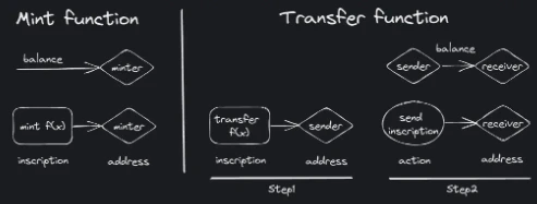 BRC-20 的 Mint 和 Transfer 功能,来源: https://domo-2.gitbook.io/brc-20-experiment/