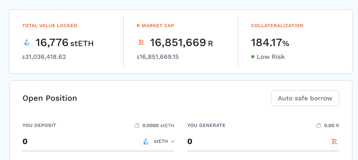 Raft 允许用户超额抵押 stETH 或 wstETH,铸造稳定币 R。R 目前有三个流动性池,分别为 Balancer R/wstETH 池、Balancer R/DAI 池以及 Uniswap v3 R/USDC 池。