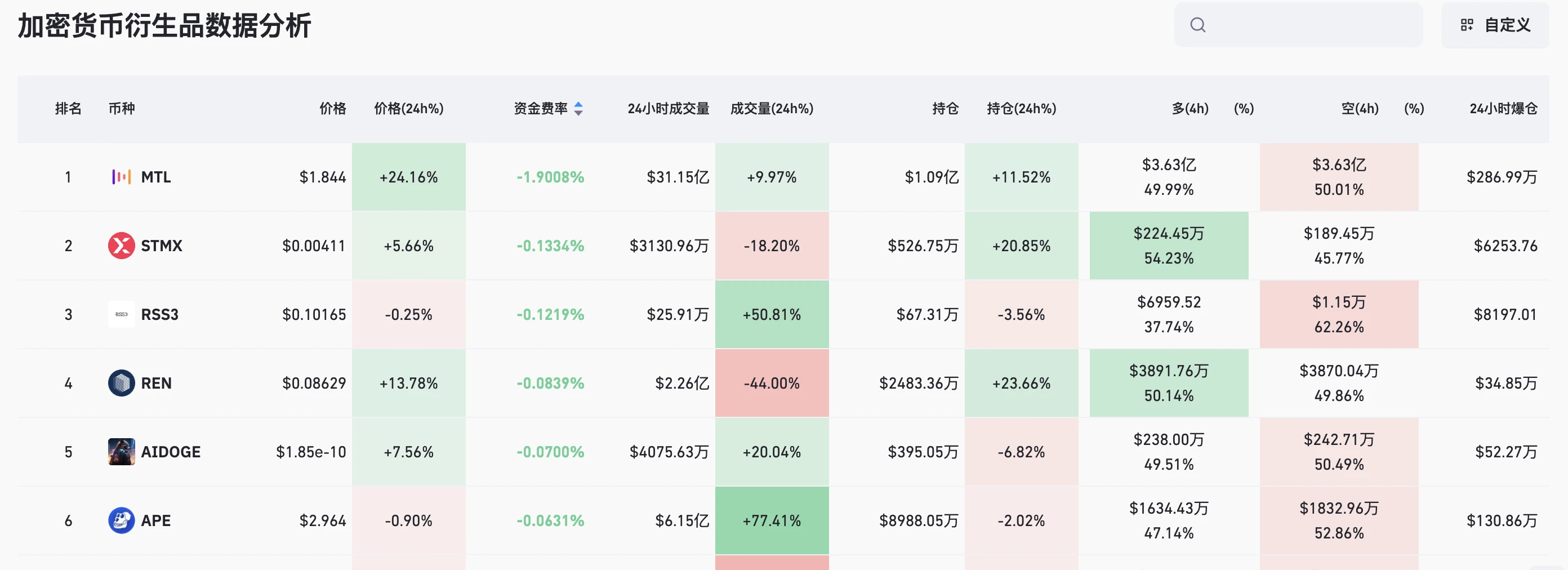 1、合约的资金费率: 出现轧空的前提是空头仓位压倒性多过多头仓位。具体表现形式是,当某山寨币的合约资金费率超过-0.1% (即空头日化利息 0.3% ,年化利息超过 100% ),则说明短期空头情绪较为极致,超过-0.75% 更会加速上涨。后面的几个讨论案例都看到出现极端的负值资金费率。
