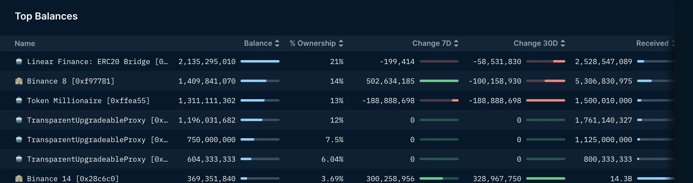 1、LINA: Linear 是一个跨链兼容的 defi 类合成资产协议,基本面乏善可陈。5 月底开始质押铸造稳定币 LUSD,质押比例高达流通的 22% 。稳定币 LUSD 和 BUSD 组对 LP 挖代币 LINA 的收益率高达 60% ,吸引了预计有 10% 的比例套保挖矿。市场主力进场买入 23% 的流通量,如此一来质押的 22% 加上庄家控盘的 23% ,总共约 50% 的 LINA 筹码被锁定。这是一个很典型的操纵性轧空,庄家手握现货操纵合约。