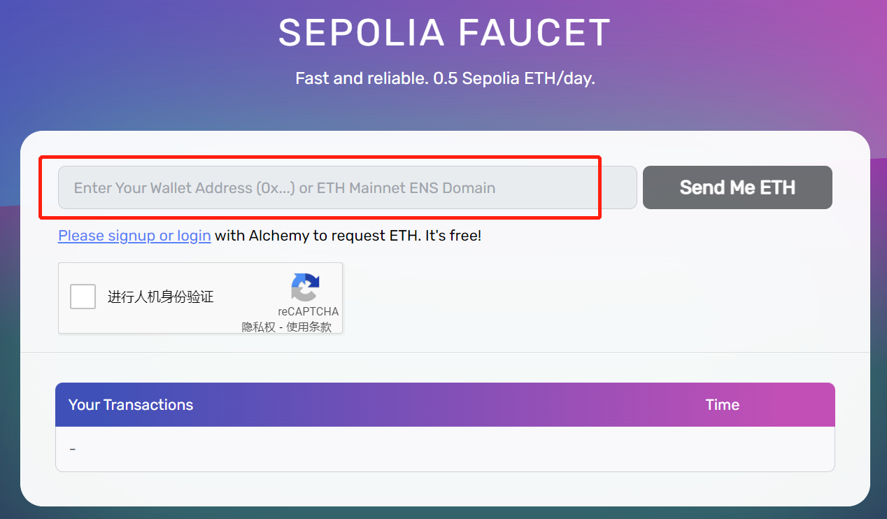 使用 Sepolia eth 水龙头,获取测试网 ETH 代币。