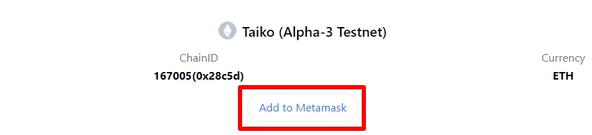 并添加 Taiko(Alpha-3 测试网)到 Metamask 钱包。