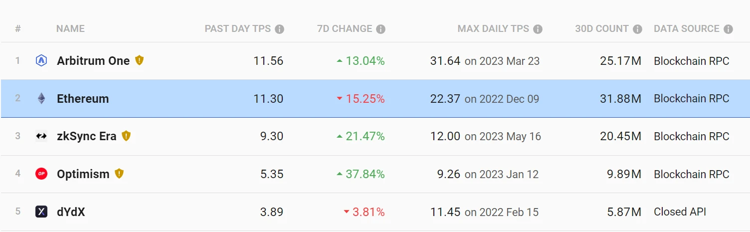 对比以太坊L2的 TPS 来看,目前,Sui 实际 TPS 还很低。