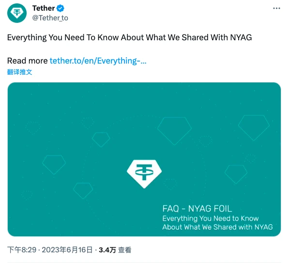 6 月 16 日,纽约州总检察长办公室(NYAG)向媒体披露了一份关于 Tether 的文件材料。