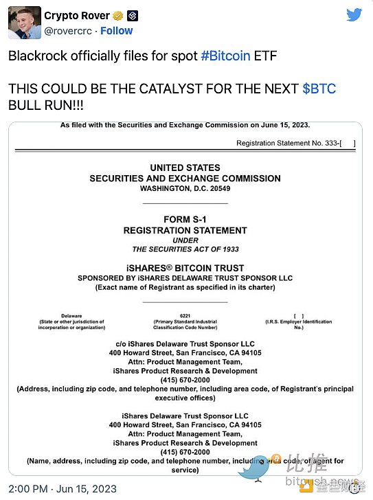 截至目前,SEC已经拒绝了所有公司的现货比特币 ETF 申请。贝莱德的文件是在SEC起诉其加密货币托管合作伙伴 Coinbase 违反证券法一周后提交的,这让许多人猜测贝莱德申请的意图。