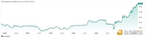 最近的 TradingView 数据显示,比特币的主导地位,即BTC占加密货币总市值的比例,已高达 49.8%。这是自 2021 年 7 月以来未见的水平,当时比特币的主导地位超过 48%。
