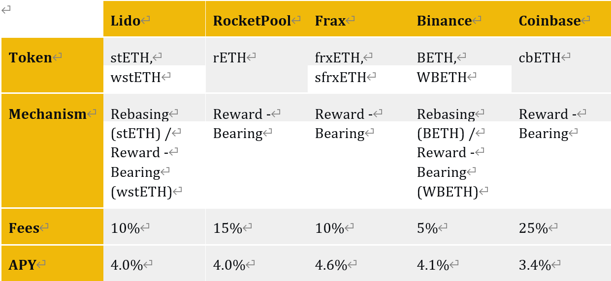 上表提供了几个 LSDfi 项目的概述。这里有各种各样的项目,从 CDP 稳定币到自动化收益策略。随着时间的推移,我们可以预见到这个领域将有更多的创新,这将通过提供更多的产生收益的选项来使 LSD 持有者受益。