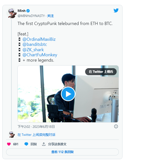 因此,如果周六的 CryptoPunk 销毁听起来有些耳熟,那是因为这不是第一次有人希望象征性地将资产的底层链从以太坊转移到比特币来销毁昂贵的 NFT。