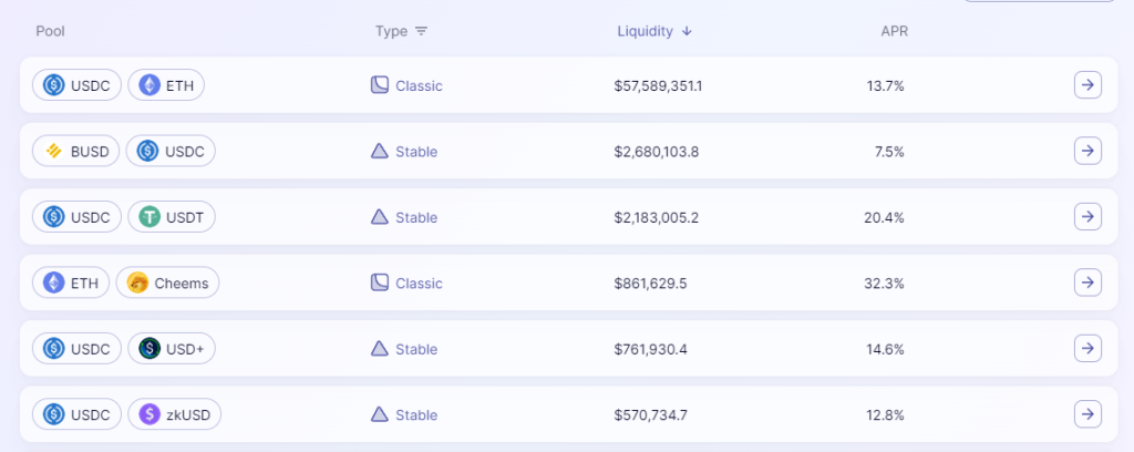 数据来源:Syncswap 官方 时间: 2023.6.9 制表:Mint Ventures