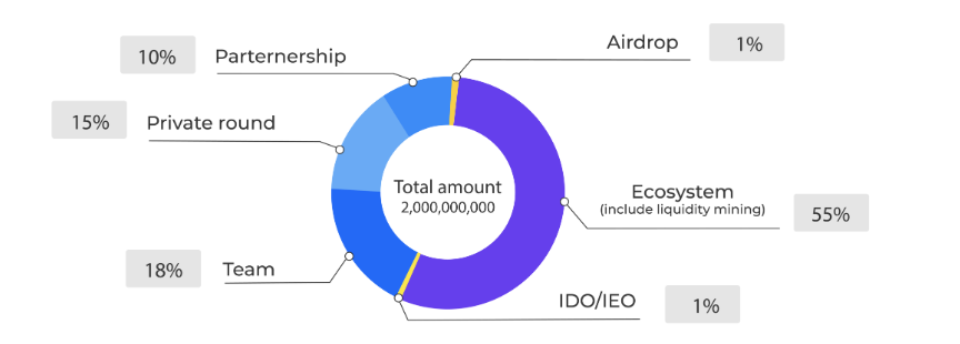 iZUMi 的项目代币是 IZI,总量 20 亿,在以太坊、BNBchain、Polygon、Arbitrum 和 zkSync 上均有分布。