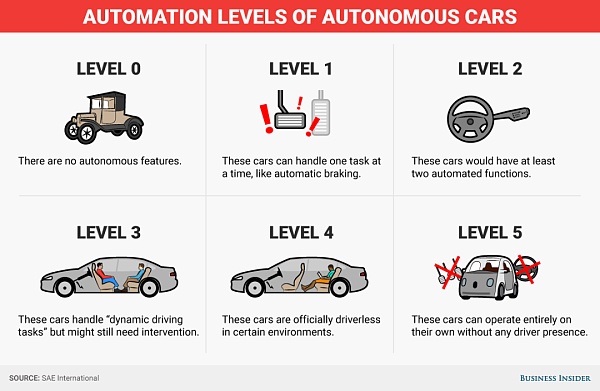 而我们目前最高到L3级,即借助人工智能,车辆可以处理所有驾驶任务 ,但在紧急情况或者其他类似系统故障的情况下,仍需要驾驶员在场。
