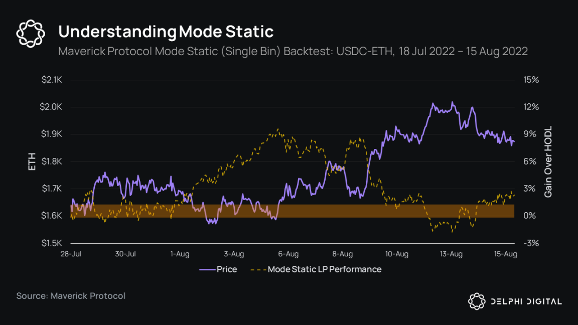 Mode Static 是 Maverick 的「正常」模式,其运作方式与现有的 AMM 类似。Mode Static 未采用自动流动性转移机制,但在如何通过三个默认选项部署流动性方面给了用户很大的自由:
