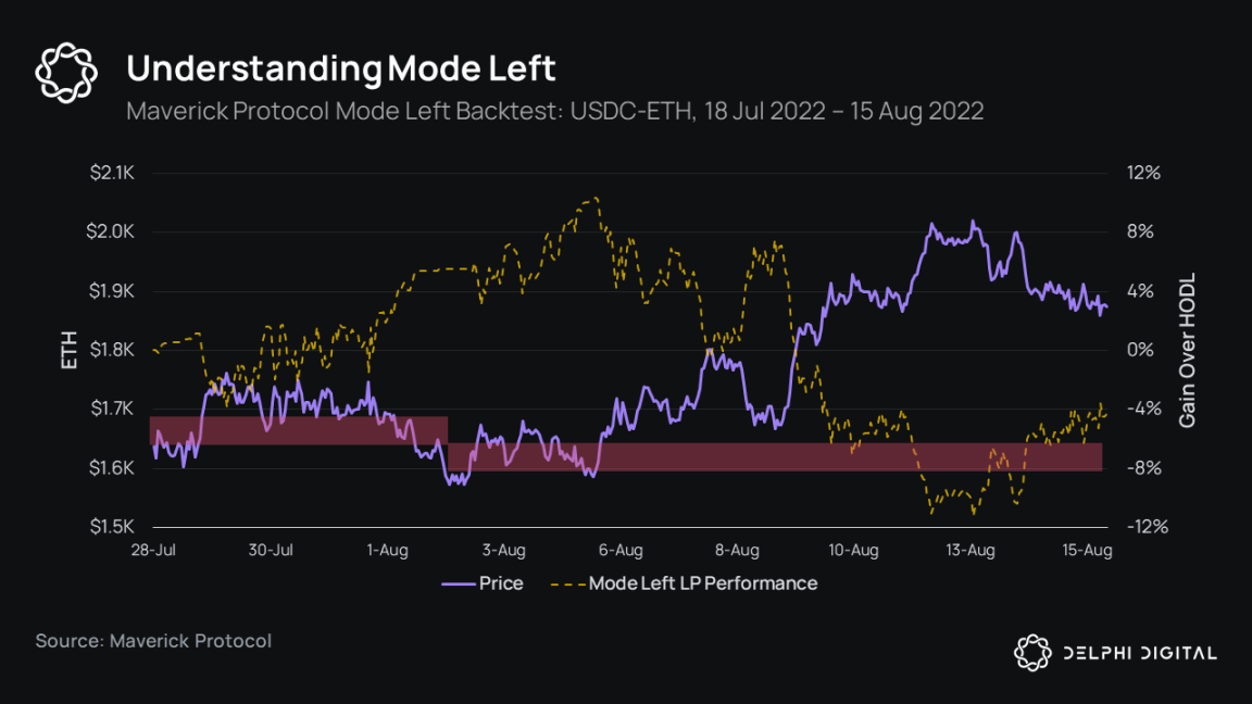 Mode Left 与 Mode Right 类似,但完全相反。当你看跌时,Maverick 会不断地将流动性转移到当前 Active bin 的右侧。如果预测正确,他们可以赚到很多钱,而且无常损失很少。