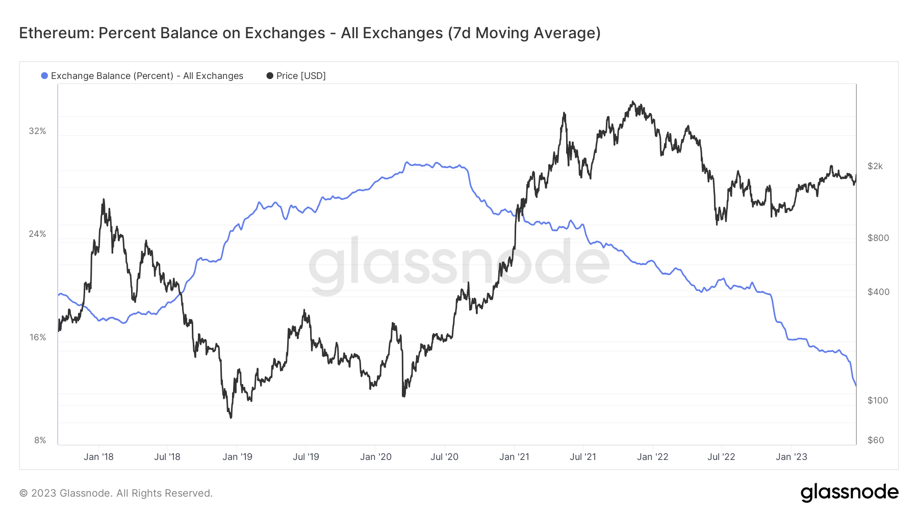 以太坊交易所余额仅占供应量12.6%,创历史新低