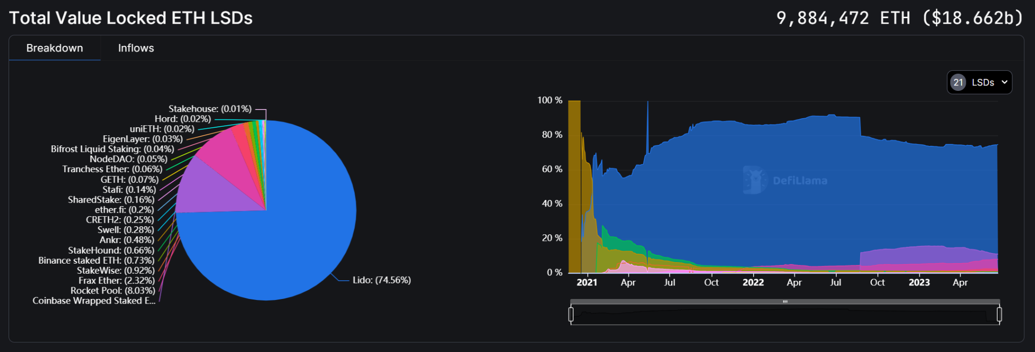 ETH 质押与接触质押/质押总量图(来源:Nansen,时间: 2023.06.23 )