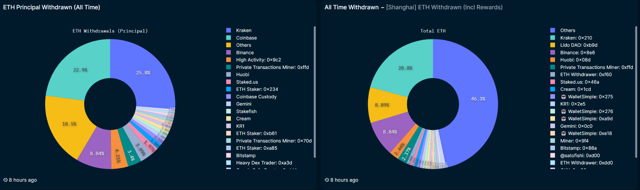 上海升级后 ETH 本金/奖励解决质押图表(来源:Nansen,时间: 2023.06.23 )
