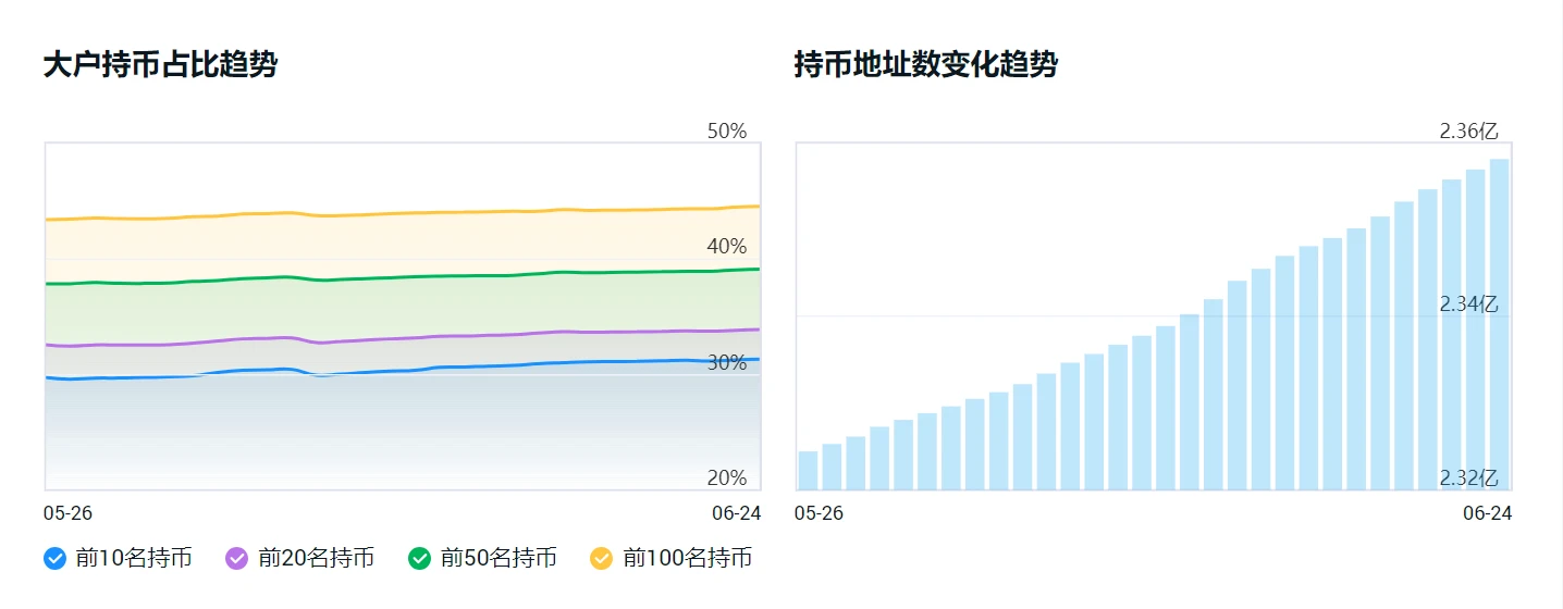 ETH 大户持币(有交易所和桥地址)与地址数量变化图(来源:非小号,时间: 2023.06.23 )